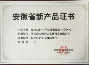 新產品證書2015